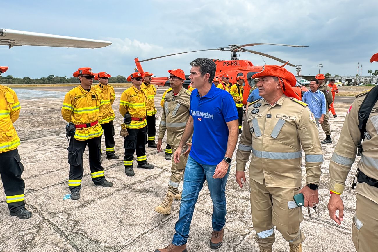 Governador Helder Barbalho, coronel Jaime Benjor e integrantes do Corpo Bombeiros Militar e da Defesa Civil EstadualA região de influência do município de Santarém, no oeste do Pará, já conta com reforço nas ações de combate a incêndios e auxílio humanitário. O governador Helder Barbalho esteve nesta quarta-feira (18) em Santarém para entregar novas aeronaves ao Corpo de Bombeiros Militar e à Defesa Civil Estadual. As aeronaves são essenciais para a logística e operacionalidade das forças de emergência na região.