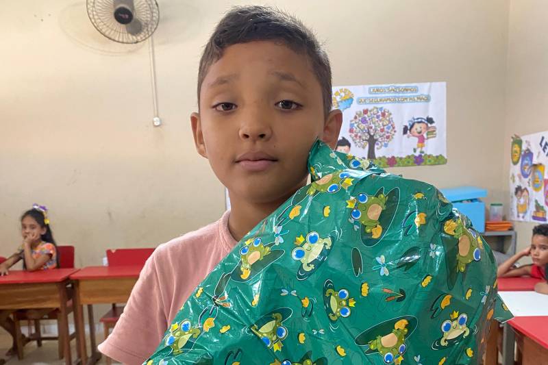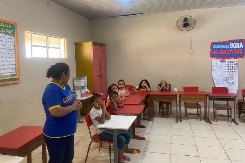 A professora Dulcileia Vieira explica que o projeto surgiu a partir da necessidade observada na escola, onde muitos alunos não tinham material escolar no início do ano, o que resultava em faltas frequentes. Com isso, ela buscou apoio e iniciou uma parceria com o HGT, trazendo resultados significativos para as crianças da comunidade.