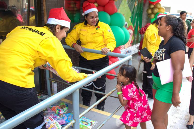 Com a chegada do período natalino, os agentes de fiscalização do Departamento de Trânsito do Estado do Pará (Detran) mais uma vez proporcionaram momento de emoção e diversão às crianças atendidas na Fundação Santa Casa de Misericórdia. Realizada nesta quinta-feira, 19, a 3ª edição do Natal Solidário é uma parceria da Fiscalização do órgão com o hospital. Este ano, a ação atendeu 200 crianças atendidas no Ambulatório da Pediatria.