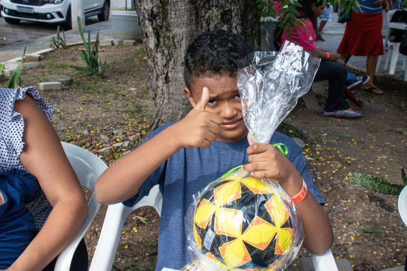 O espírito natalino tomou conta do ambiente e o espaço de saúde virou um momento de confraternização. O pequeno Glauber Nascimento, de 9 anos, não escondeu a felicidade quando recebeu a bola de futebol do Papai Noel. "Esse ano eu queria muito uma bola de futebol, eu pedi para o Papai Noel e hoje eu ganhei. Gostei muito de vir aqui e ter encontrado ele e a Mamãe Noel, fiquei muito feliz", afirmou.