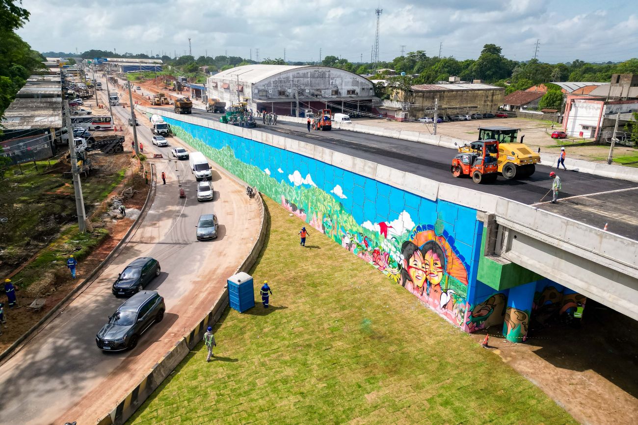Mural de arte - Além de levarem os condutores para a Alça Viária e a BR-316, as rampas dos viadutos viraram um mural de arte. Com a temática "floresta na COP 30", o artista paraense Moisés Oliveira, escritor de Graffiti e morador de Marituba, cidade onde o viaduto foi erguido, criou o projeto e pintou a fauna e a flora amazônica nas paredes do muro.