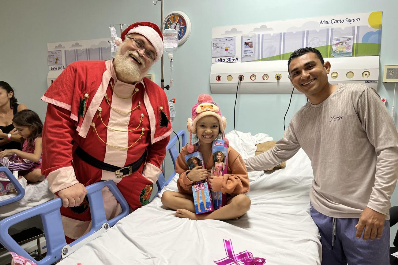 Ágatha Yasmim Costa, 11 anos, ficou encantada quando teve o pedido ‘atendido’ pelo Papai Noel: um patins de quatro rodas. Ela está em tratamento contra um tumor cerebral no Hospital Oncológico Infantil Octávio (Hoiol) e escreveu uma cartinha por meio do projeto “Um sonho de Natal”, idealizado pelo setor de Humanização. A iniciativa busca levar conforto aos pacientes que enfrentam a doença e proporcionar momentos especiais durante as festas de fim de ano, quando muitos desses pequenos estão longe de casa e das tradições natalinas em família.