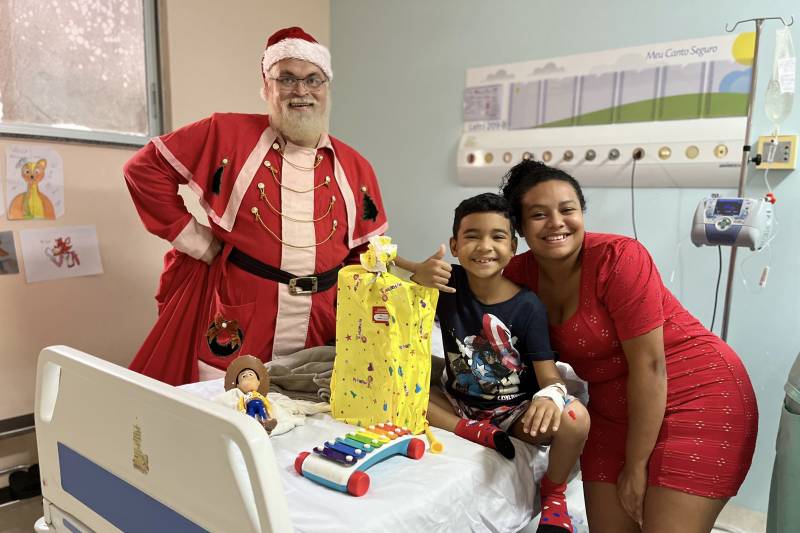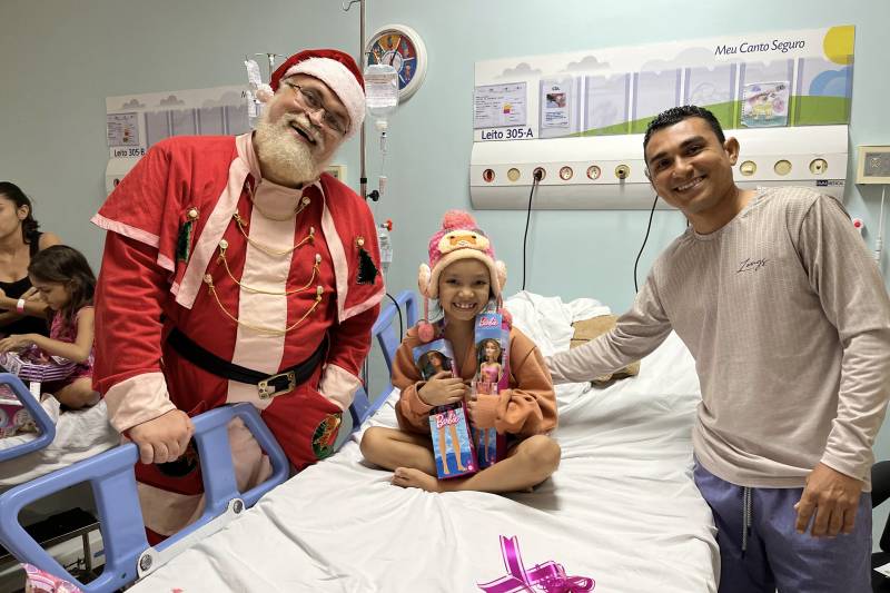 O brilho nos olhos dos pequenos pacientes refletiu o esforço coletivo para tornar o Natal mais leve, mesmo diante de um momento tão desafiador. De forma anônima e espontânea, os colaboradores do Hoiol escolheram as cartinhas. Ao todo, 126 envelopes foram adotados pelos profissionais da unidade em um gesto de solidariedade, surpreendendo crianças e adolescentes com brinquedos, presentes, e a visita do bom velhinho, que trouxe sorrisos e abraços calorosos.