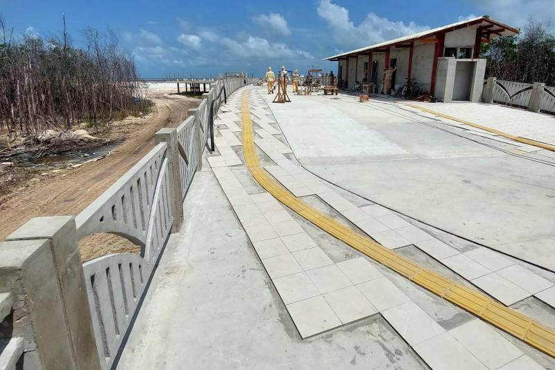 Primeira passarela de acesso à Praia do Maçarico, em Salinópolis, chega a 95% de conclusão