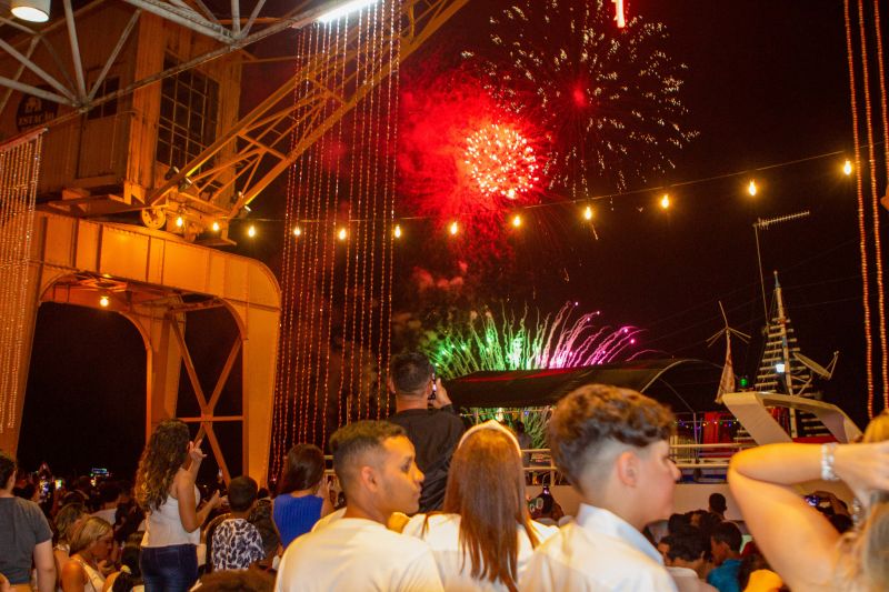 Show pirotécnico - À meia-noite, na virada para 2025, haverá uma pausa no show para a pirotecnia. Estão previstos 15 minutos de fogos de baixo impacto sonoro, conforme estabelece a Lei Estadual 9.593/2022, que proíbe fogos de artifício com estampido no Pará.