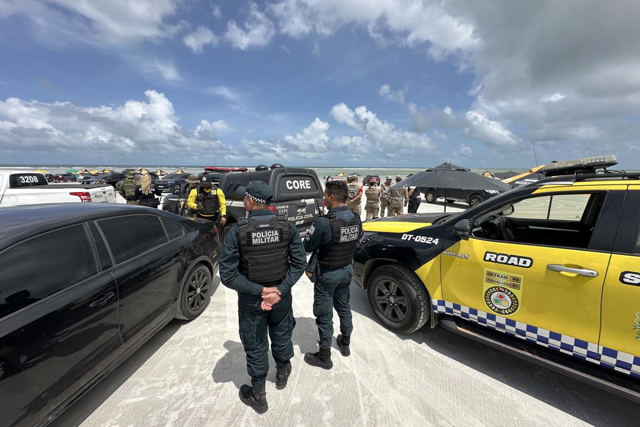 Ainda em Salinopólis, os órgãos de segurança cumprem a decisão judicial que proíbe o acesso e a permanência de veículos automotores com aparelhos sonoros (carretinhas) nas faixas de areia das praias. Os veículos identificados foram autuados pelo Detran e a força integrada orientou para saída da faixa de areia em cumprimento à decisão judicial.