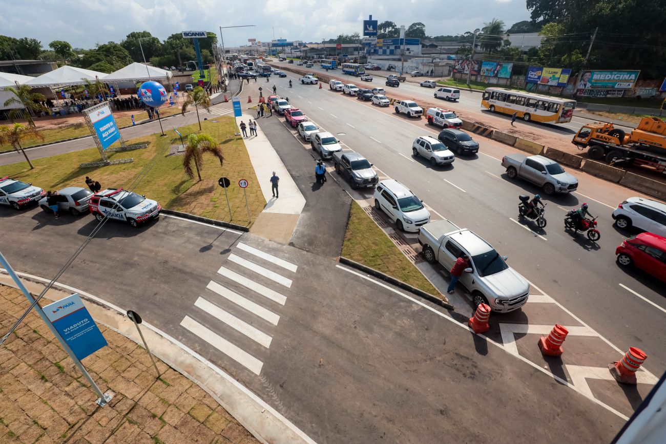O viaduto, construído pelo Núcleo de Gerenciamento de Transporte Metropolitano (NGTM), é integrado ao sistema do BRT Metropolitano, para ampliar a fluidez do tráfego intenso, reduzir congestionamentos e melhorar a qualidade de vida dos moradores e usuários que transitam diariamente pela Grande Belém.