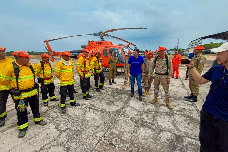 Reforço para o Corpo de Bombeiros Militar em SantarémSegurança e meio ambiente – Para Santarém, na região Oeste, o Governo do Pará levou duas aeronaves para intensificar o combate a incêndios, acelerando o trabalho dos agentes do Corpo de Bombeiros Militar e da Defesa Civil Estadual. O Estado reforçou ainda sua estrutura na região com mais seis embarcações, kits de segurança e 30 placas de sinalização. Entregues em Santarém, os equipamentos serão destinados ao monitoramento dos Acordos de Pesca na região, resultado da colaboração entre o Governo do Pará e a Hidrovias do Brasil.