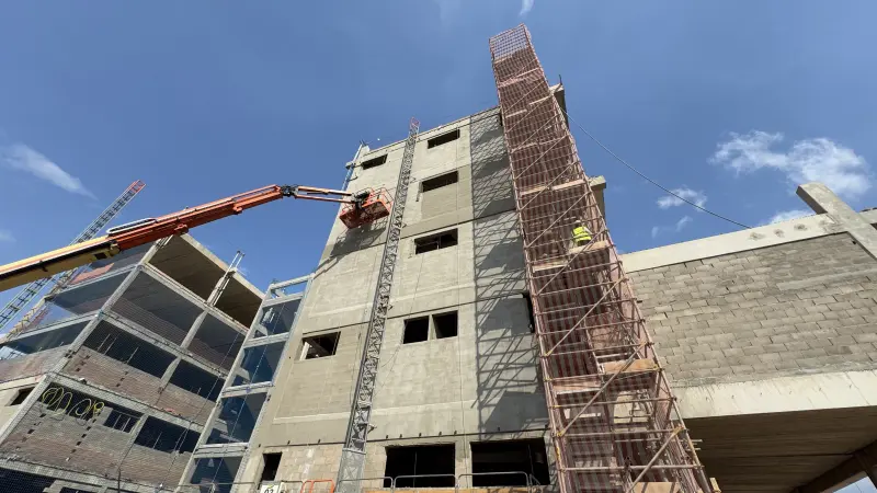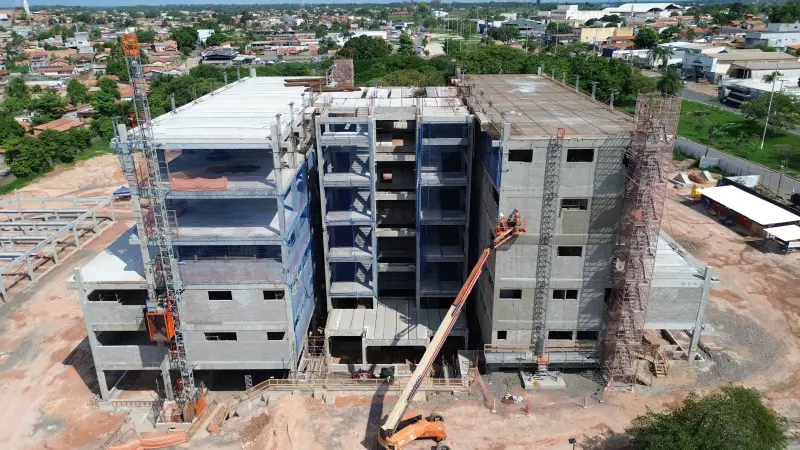 Obra alcança 43,63% dos serviços concluídos, avançando para etapa de vedações em alvenaria, com previsão de entrega para o segundo semestre de 2026
