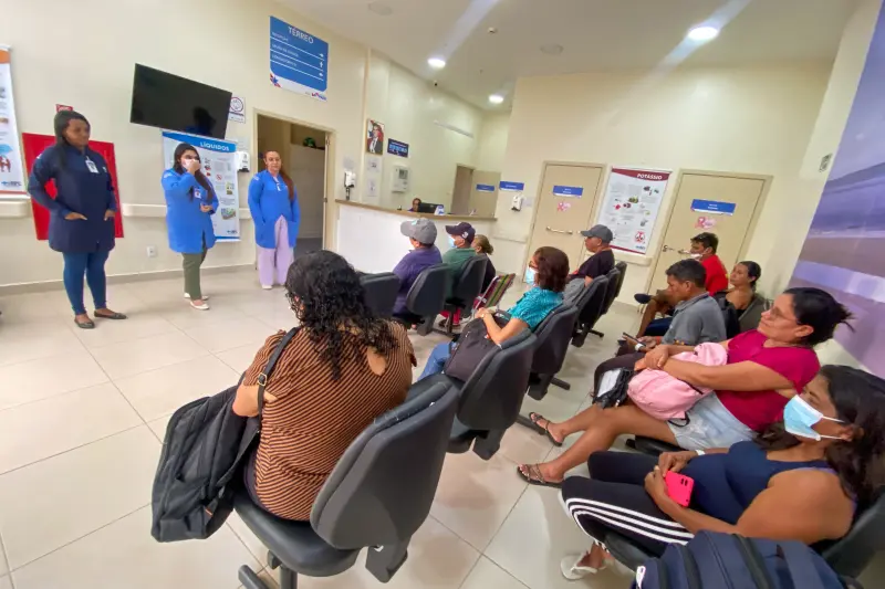 Grupo de Trabalho de Humanização (GTH) do hospital conduziu a ação de educação em saúde no Centro de Hemodiálise, da Policlínica dos Caetés