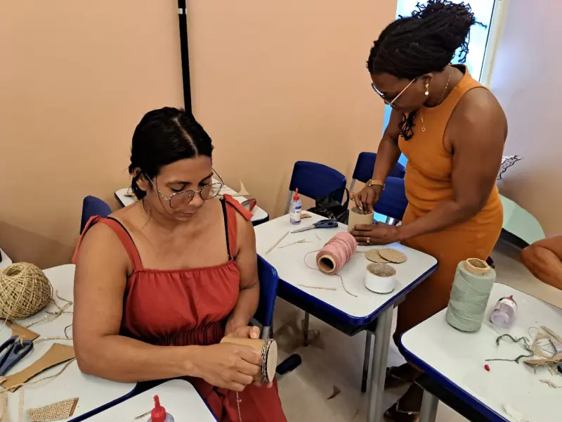 A técnica da CTC, Rosilene Santos, ministrante da oficina, explica que inicia as aulas apresentando todo o material que será utilizado e também um pouco sobre a fibra de malva, com técnicas de manuseio, corte, colagem e customização das peças. “Muitas já trabalham com costura, e isso faz com que as aulas sejam mais dinâmicas. Aqui, elas aprendem na prática. Eu acompanho desde o corte até a finalização de cada peça, e as alunas ficam à vontade para pôr em prática toda a sua criatividade”, destacou a professora.