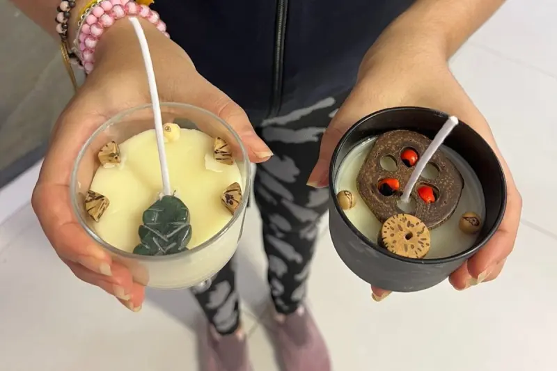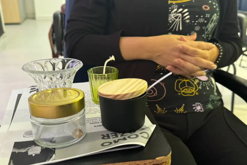 Em seguida, veio a parte mais aguardada: a aula prática. As participantes puderam colocar a mão na massa, experimentar os aromas e criar suas próprias velas, tudo sob supervisão, levando em consideração as escolhas pessoais de cada uma.