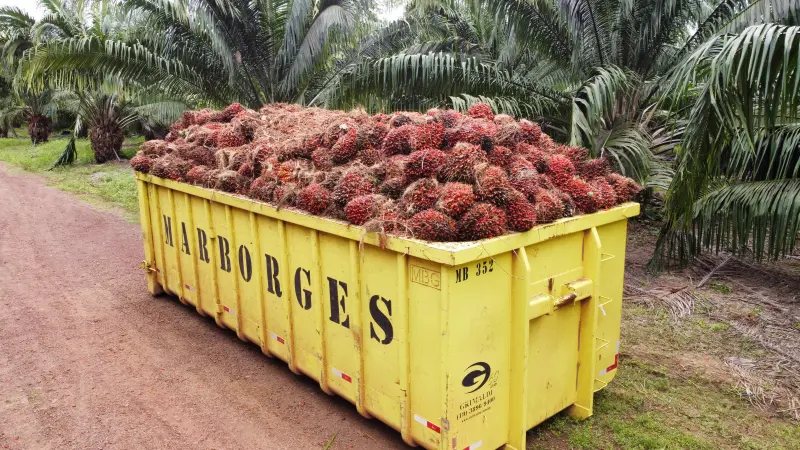 No plantio da empresa, chama a atenção a colheita manual, uma opção mais barata que usa tração animal para diminuir os custos com o transporte dos frutos. Nos seis módulos de produção da empresa, são utilizados 85 búfalos para fazer a atividade de carreamento, que é a retirada dos cachos de frutos das plantas até as caixas que serão destinadas à fábrica. Cada caixa tem capacidade para 15 toneladas de frutos.