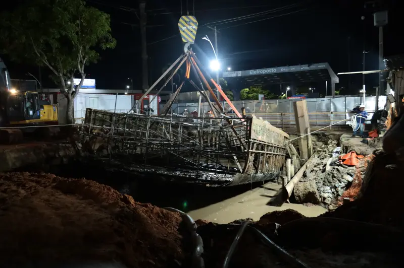 A embarcação metálica antiga, encontrada durante as obras da Nova Doca, na Avenida Visconde de Souza Franco, em Belém, teve o terceiro e último segmento resgatado na noite desta segunda-feira, 27. Ao longo de cinco meses, com o acompanhamento da Secretaria de Estado de Obras Públicas (Seop) e o Instituto do Patrimônio Histórico e Artístico Nacional (Iphan), o achado arqueológico passou por minuciosos procedimentos de escavação e içamento para que sofresse o mínimo de intervenção, mantendo as suas características.
