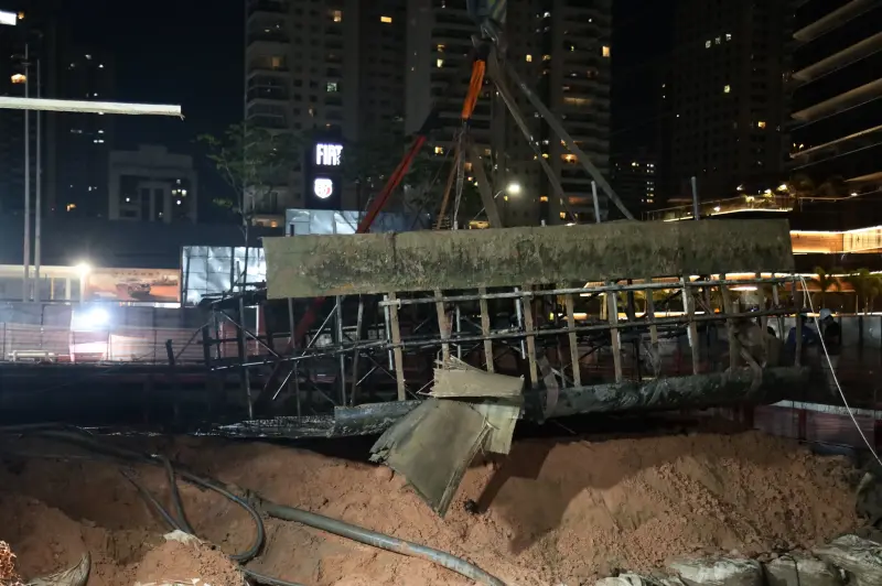 Último segmento de embarcação antiga encontrada na Nova Doca é resgatado na noite desta segunda-feira (27)