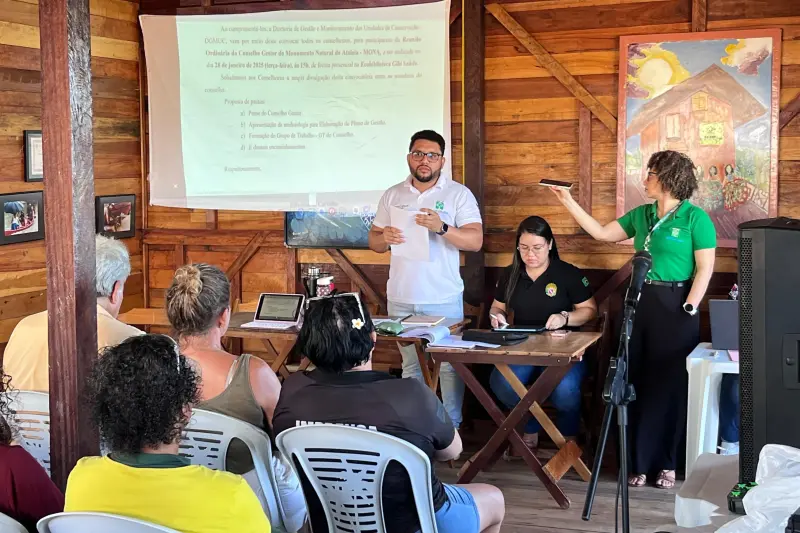 Membros do Conselho Gestor do Monumento Natural do Atalaia, de Salinópolis, município do nordeste paraense, participaram na quarta-feira (29) de Reunião Ordinária promovida pelo Instituto de Desenvolvimento Florestal e da Biodiversidade do Pará (Ideflor-Bio), por meio da Diretoria de Gestão e Monitoramento de Unidades de Conservação. No encontro, a pauta principal incluiu a posse da nova gestão do Conselho, apresentação da metodologia de elaboração do Plano de Gestão e formação do Grupo de Trabalho que acompanhará a construção desse documento estratégico.