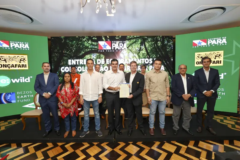 O governador Helder Barbalho entregou, nesta segunda-feira (3), o primeiro documento de regularização fundiária voltado à conservação da natureza e proteção ambiental na história do Pará. O documento foi entregue ao CEO/fundador da Organização Não Governamental (ONG) Onçafari, Mario Haberfeld, e o diretor-presidente da ONG Onçafari, Alexandre Rossi.