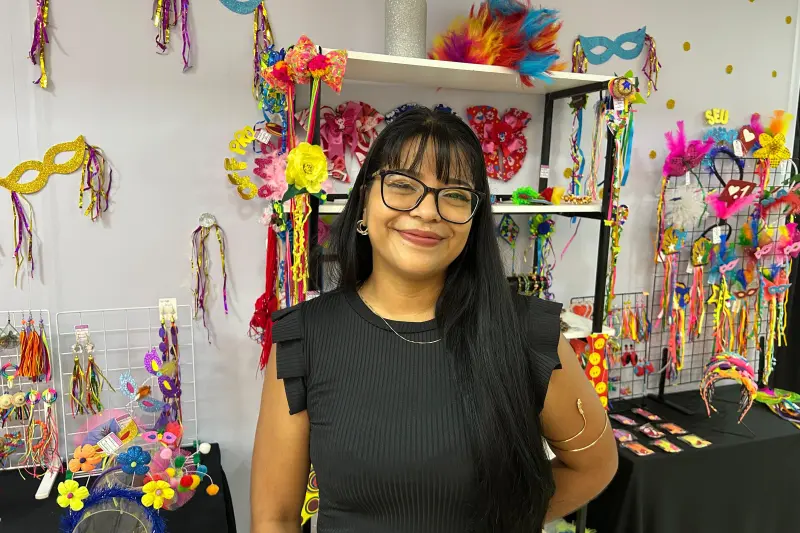 Já a artesã Adelaide Lopes, agradeceu pela oportunidade de estar vendendo seus produtos em um lugar com grande circulação de pessoas. "Essa feirinha é uma grande oportunidade para nós, artesãs. Aqui, conseguimos mostrar nosso trabalho, conquistar novos clientes e garantir uma renda extra para o Carnaval. Estou muito feliz por essa visibilidade", contou.