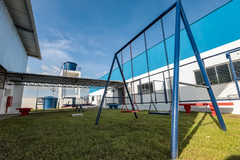 Estrutura de qualidade - Foram investidos R$ 4.104.405,85 na construção da unidade, que conta com nove salas de aula, uma sala multiuso, cinco banheiros, lactário, berçário/amamentação, trocador, sala dos professores, coordenação, secretaria, copa/cozinha, despensa, área de serviço, além espaço de área externa com espaço de convivência (quadra), parquinho em areia jardim, horta e banho externo.