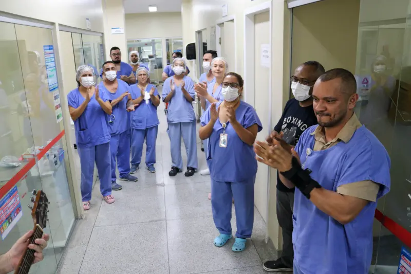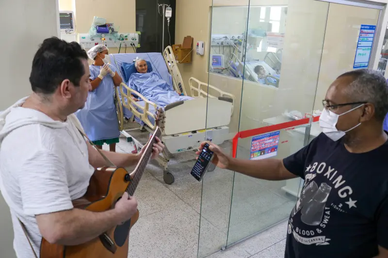 Nelma Machado, médica intensivista, gerente da UTI Adulto, relata que esse propósito de fazer essa ambiência mais acolhedora humana é uma iniciativa de acolhimento e humanização para fortalecer esses vínculos entre a equipe, os familiares e o paciente. “Durante esse dia a gente pergunta para os pacientes e para os familiares sobre a música que eles queiram ouvir, que seja significativa para eles. Aí a equipe da UTI, que é composta por médicos, enfermeiros, psicólogos, fisioterapeutas, fonoaudiólogos, terapeutas ocupacionais, técnicos de enfermagem, uma equipe bem, faz a execução prática”.