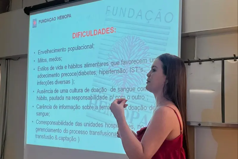 Camila Medina, assistente social da Gerência de Captação de Doadores (Gecad), do Hemopa, ressaltou que os principais obstáculos enfrentados para aumentar o número de doadores. "Esses entraves incluem o envelhecimento da população, mitos e medos em relação à doação, e hábitos de vida que favorecem doenças como diabetes, hipertensão e infecções sexualmente transmissíveis. Além disso, a falta de uma cultura de doação de sangue enraizada na sociedade, aliada à carência de informações sobre o processo, agrava ainda mais a situação", alertou.