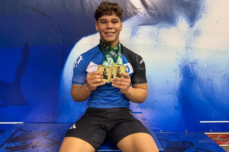 O jovem atleta de jiu-jitsu, Ricardo Filho, mais conhecido como Zito, 16 anos, conquistou três medalhas na competição que abriu o calendário da Federação. As conquistas vieram nas categorias pessadíssimo sem Kimono, Absoluta com Kimono e categoria Kimono. “Três medalhinhas de ouro, no Campeonato Conde Koma, duas conquistas vieram na categoria com Kimono, e uma sem Kimono. Estou muito feliz, gostaria de agradecer ao Governo do Pará por oferecer a Arena Mangueirinho, uma estrutura ótima, arquibancada climatizada, muito bom, só tenho a agradecer”, disse o atleta.