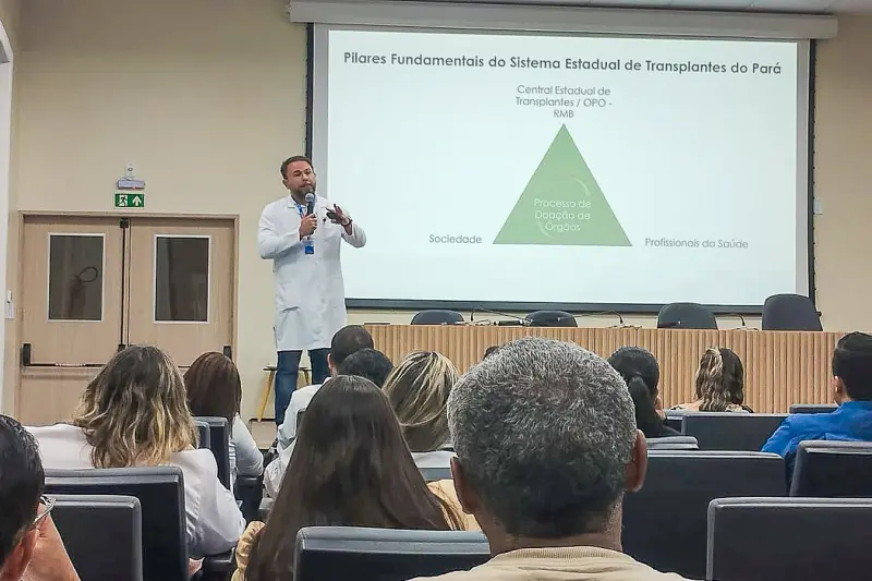 Central de Transplantes - Alfredo Abud, médico coordenador da Central Estadual de Transplantes da Sespa, durante o evento fez a sua exposição sobre o crescimento do número de transplantes e de doações de órgãos, que é reflexo do esforço conjunto da equipe de saúde e o acolhimento às famílias atendidas.