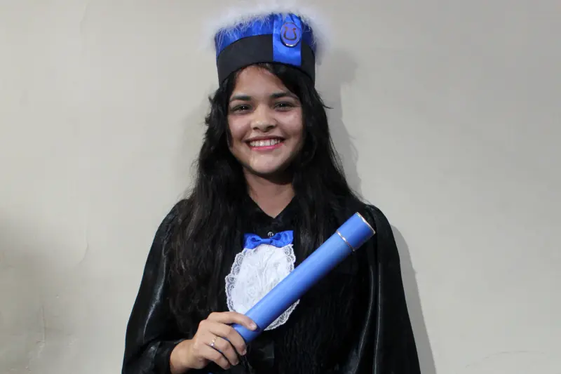 Outra formanda que demonstrou satisfação ao concluir o curso na instituição foi Cássia Rabelo, 21 anos, que expressa sua alegria por este momento, após anos de dedicação aos estudos voltados para bateria. "Já faz sete anos que estudo aqui no IECG. Ingressei através da musicalização, passei pelo curso preparatório, e hoje estou me formando como técnica em música. Estou muito feliz por ter concluído essa trajetória”, diz animada.