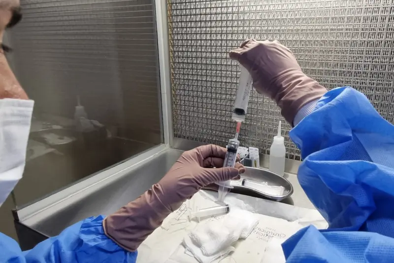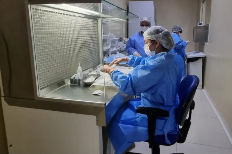 “Existe uma segurança no processo inteiro, desde a reconstituição do medicamento até o envasamento na seringa, na embalagem. Tudo é um controle de qualidade que a gente tem, uma segurança nesse processo todo”, reforça Gisele Alves.