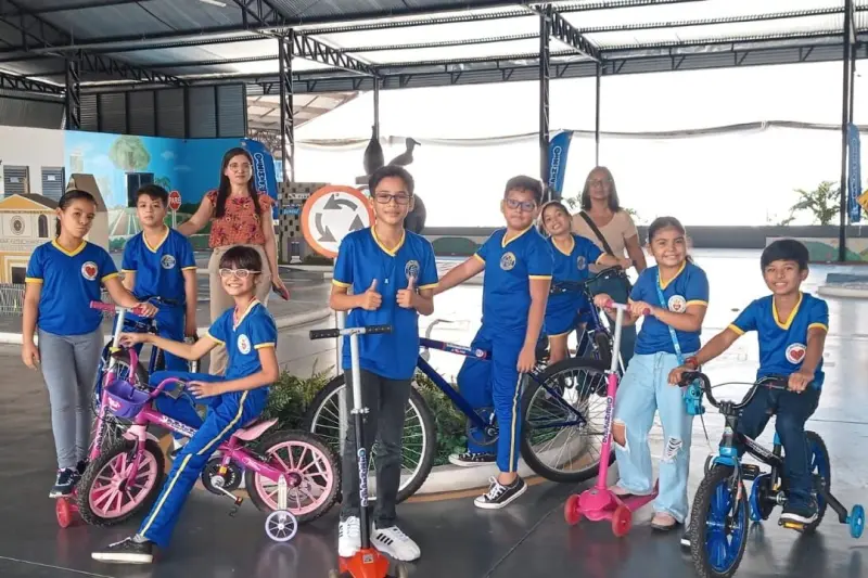 Crianças e adolescentes de escola pública aprendem sobre educação para o trânsito