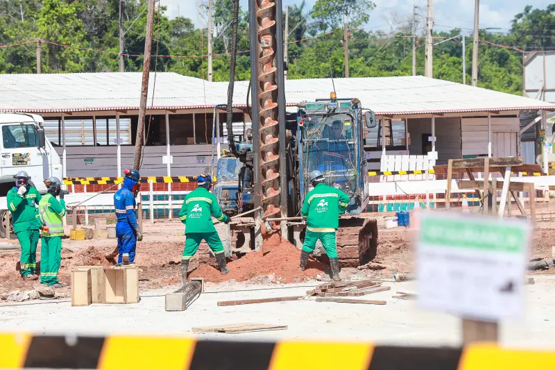 A construção da Usina da Paz em Óbidos, município da Região de Integração Baixo Amazonas, oeste paraense, já desperta a atenção e gera expectativas em quem passa pela Rodovia PA-437, na confluência com a estrada do Curumu. Diariamente, a obra resultante da parceria entre o Governo do Pará e a empresa Vale movimenta 120 profissionais, que trabalham com apoio de máquinas retroescavadeiras, perfuratriz, escavadeiras e caminhão Munck. Os serviços executados em um terreno de quase 16 mil metros quadrados (m²), com 6 mil m² de área construída, prosseguem em ritmo acelerado, já atingindo 30% de conclusão.