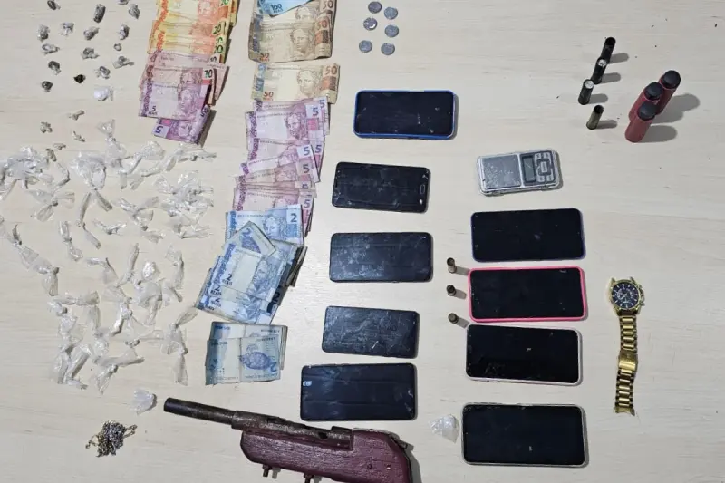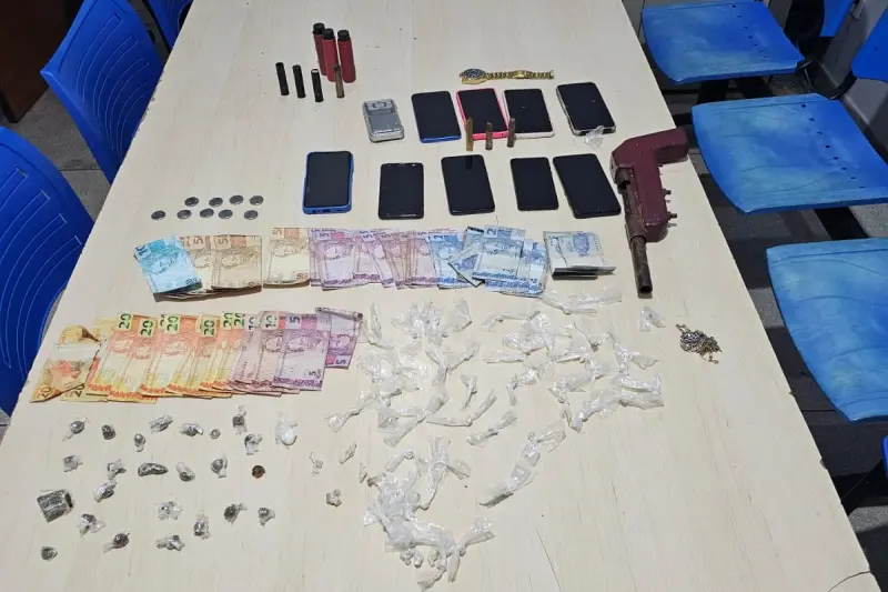 Durante a operação, foram apreendidos aparelhos celulares, armas de fogo, munições e drogas. Os presos foram levados ao sistema prisional e estão à disposição da Justiça.
