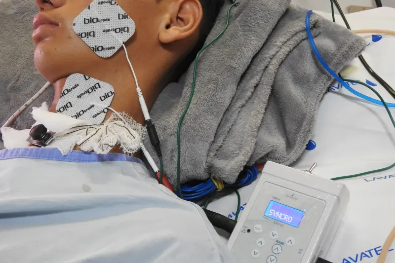 “Quando a fonoaudiologia começou a utilizar a eletroterapia, a fisioterapia já usava. Começamos a observar que a região do pescoço é atingida quando o paciente passa por procedimentos como traqueostomia na UTI, e o uso da eletroterapia é justamente para fortalecer o músculo daquela região para que o paciente possa engolir os alimentos de forma segura”, explicou o fonoaudiólogo.