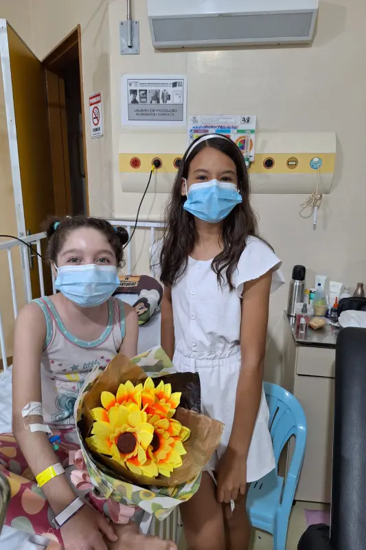 Amigas há cerca de um ano e com uma convivência frequente, entre a escola e a Igreja, preocupada com a saúde da amiga, Natália fez o pedido para sua mãe visitar Sara, que foi atendido. O reencontro, cheio de carinho e com flores de presente, reforçou a importância deste tipo de acolhimento na recuperação de pacientes em hospitalização.