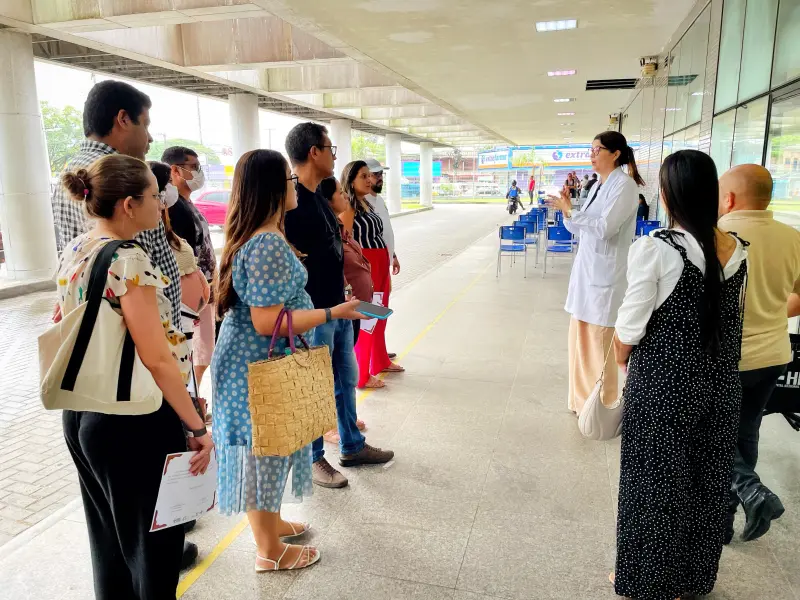 O roteiro da visita incluiu a recepção do Bloco B, consultório médico, salas de observação e estabilização, quartos de Pré-parto, Parto e Pós-parto (PPP), centro obstétrico e alojamento. Durante o percurso, as participantes receberam informações detalhadas sobre os serviços oferecidos, os protocolos seguidos pela equipe de saúde e o acolhimento humanizado proporcionado pela unidade.