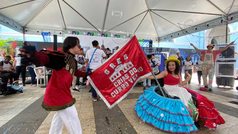 A proposta do ‘Inclusão Folia’ foi oferecer uma programação especial com segurança, respeito e diversão para pessoas de todas as idades e necessidades. A festa contou com apresentações de música, dança e encerrou com um grande arrastão puxado pela ‘Bateria Danada’ das crias do Curro Velho.
