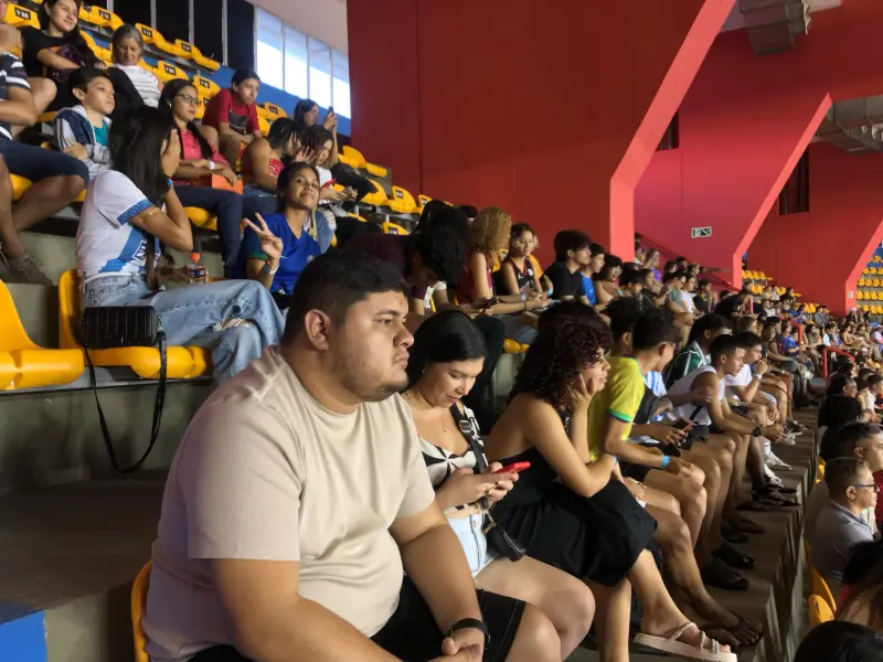 Jovens atendidos pelas Usinas da Paz acompanham jogo da Superliga de Vôlei em Belém