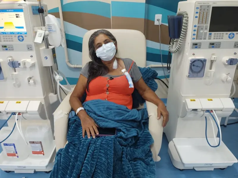 Aprovação – A idosa Raimunda Marly Alves da Silva, de 64 anos, é usuária renal do centro e foi uma das beneficiadas pela troca do cateter. Ela aprovou o serviço, enfatizando o acolhimento humanizado. "Com atroca de cateter, me sinto mais segura, antes não dormia direito, pois o antigo ficava no pescoço, era incômodo. Além disso, eu tinha vergonha de ser tão exposto. E referente ao atendimento aqui, ele é excelente. Me sinto bem acolhida, o ambiente é aconchegante e o lanche oferecido é bem servido", finalizou a dona de casa, que, antes da inauguração do Centro de Hemodiálise do HGT, fazia seu acompanhamento na Policlínica do município de Tucuruí, que também é do governo do estado.