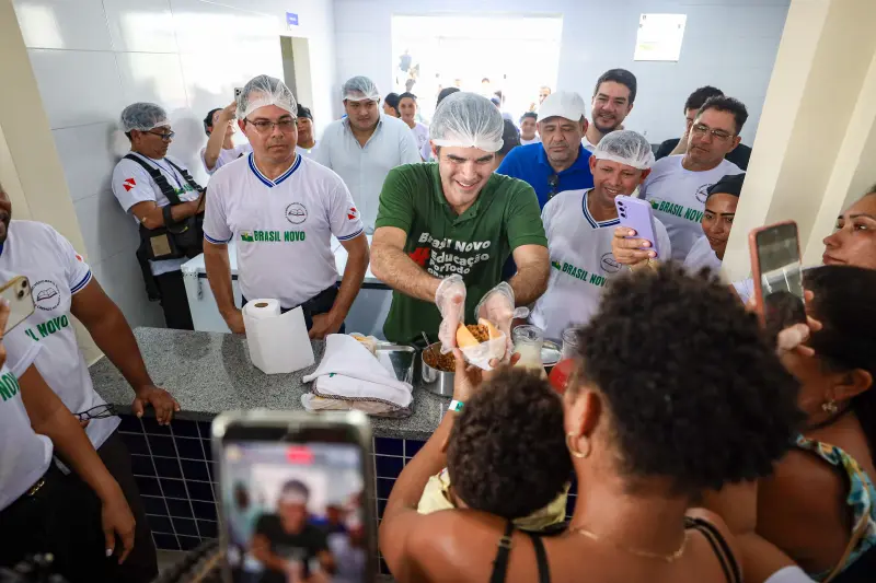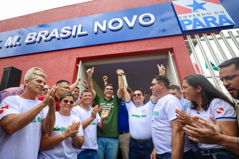"Esta é a escola de número 160 que entregamos no nosso estado. Que possamos entregar muitas outras para levar o desenvolvimento a todas as cidades, a todos os nossos alunos, às famílias do Pará. Quem mora em Brasil Novo sabe a novela que foi essa escola para ficar pronta. Fizeram um projeto errado, a escola ficou parada, o recurso federal daqui foi suspenso. Tivemos que fazer tudo com recurso próprio, porque não dava mais para esperar o Ministério da Educação conseguir encontrar a solução. Resolvi assumir para poder entregar essa obra. Hoje eu estou aqui com vocês para dizer: finalmente está pronta a Escola Estadual de Ensino Médio Brasil Novo. A escola está linda, toda climatizada, com laboratório de informática, todas as salas com ar-condicionado, a área da merenda toda adaptada, quadra de esporte, com acessibilidade", disse o governador do Estado, Helder Barbalho.