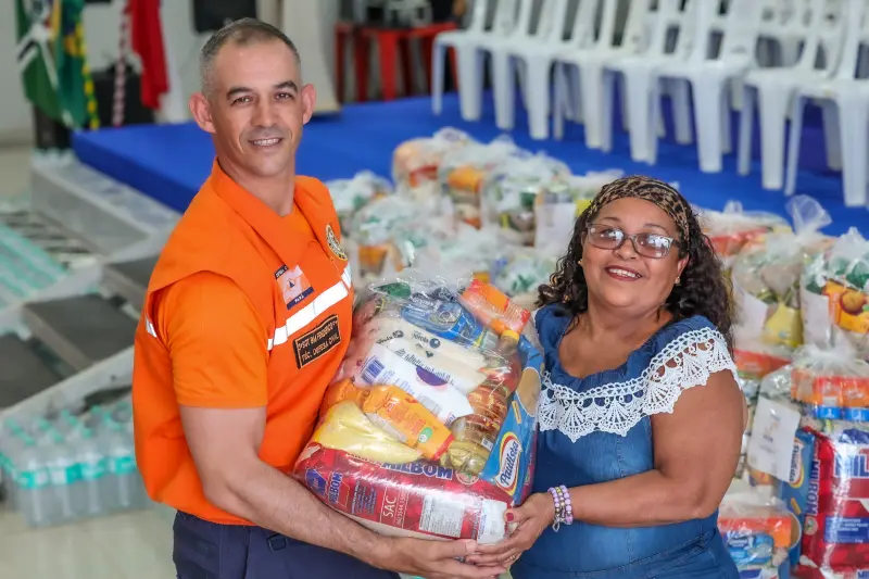 As cestas de alimentos têm feijão, arroz, café, leite, macarrão, óleo, açúcar e farinha. O coronel Celso dos Santos, comandante regional do Corpo de Bombeiros, detalha que é um recurso que chega para atender a demanda ainda da estiagem, “que está sendo trazido como uma forma de trazer uma resposta para essa necessidade que se tem com o alimento dessas comunidades".