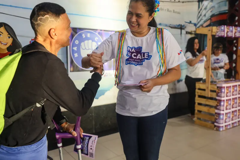 A atendente Telma Tavares recebeu orientações da equipe da Semu durante a ação no Terminal Hidroviário. “É muito importante para que meninas e mulheres, que saem para se divertir e enfrentam importunação, saibam como se defender e denunciar. Muitos homens se aproveitam do momento da folia, fingem que é brincadeira e não é. Infelizmente, muitas mulheres sofrem, diariamente, com isso. Eu, quando adolescente, estava no ônibus, e um homem me importunou. Na época eu não tinha noção do que sofri. Por isso, essa informação precisa ser amplamente divulgada”, conta.