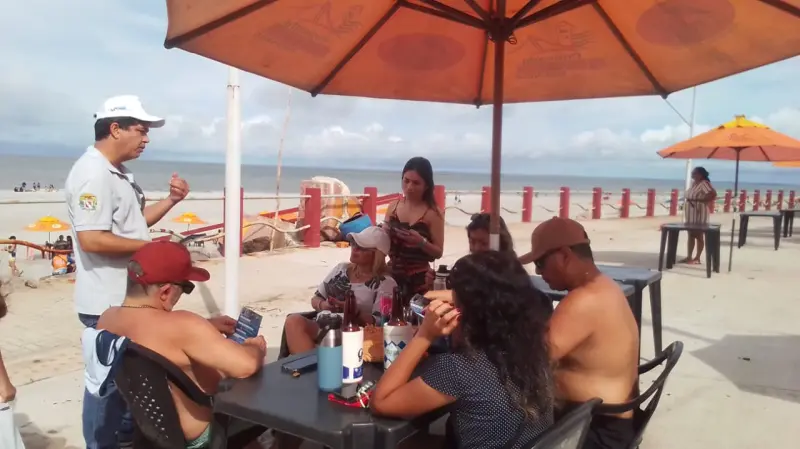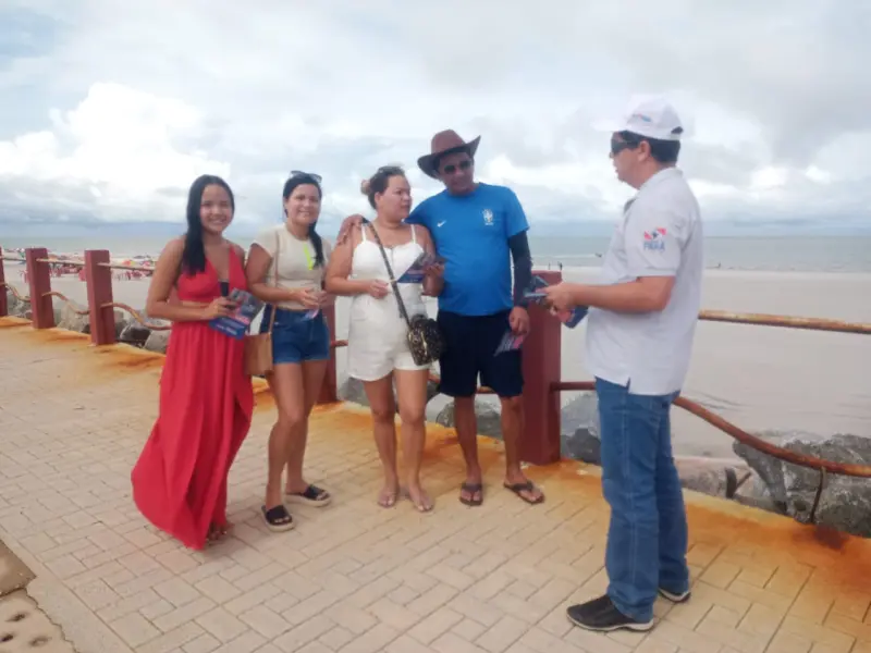 Em Salinópolis, os fiscais agropecuários conversaram com os banhistas na praia do Atalaia, Corvina e Maçarico e entregaram material informativo sobre a influenza aviária, uma síndrome respiratória que pode acometer tanto aves domésticas quanto silvestres e que, por se tratar de uma zoonose, pode ser transmissível ao ser humano.