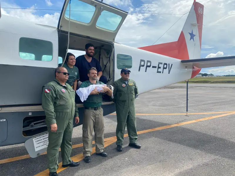 Na impossibilidade do centro de reabilitação mais próximo receber o filhote, foi solicitado o apoio logístico para trazê-lo até Belém. O voo de transporte iniciou na manhã de hoje (03), para Santarém em um Caravan, aeronave de asa fixa do Graesp. O voo transcorreu da melhor forma possível, pousando às 15h, no aeroporto de Belém.