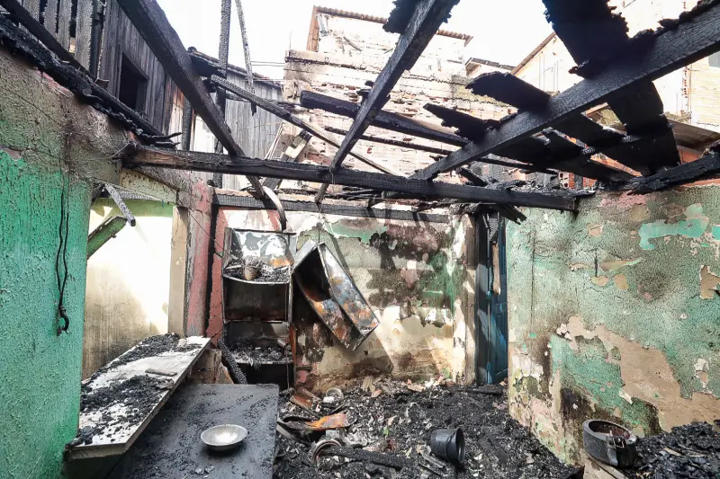 As casas foram atingidas pelo incêndio que se alastrou na Rua São Miguel, próximo à Travessa Carlos de Carvalho. A equipe da Cohab esteve no local para fazer levantamento social das famílias e laudo de engenharia das casas destruídas pelo fogo.