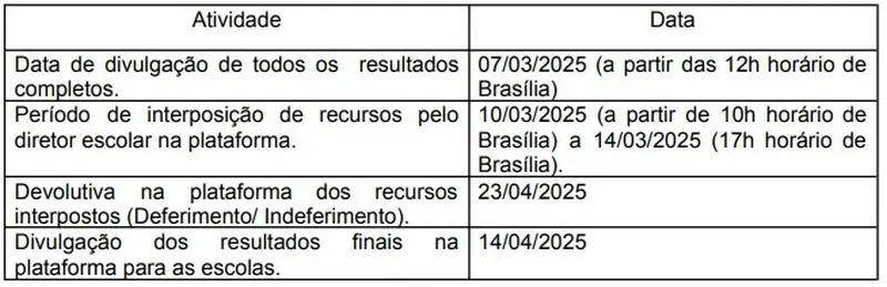 Após a divulgação dos resultados preliminares na Plataforma de Avaliação e Monitoramento do Pará, acesso por este link, será iniciada a interposição de recursos ao SisPAE 2024, durante o período de cinco dias úteis, contados imediatamente, a partir da publicação dos resultados completos.