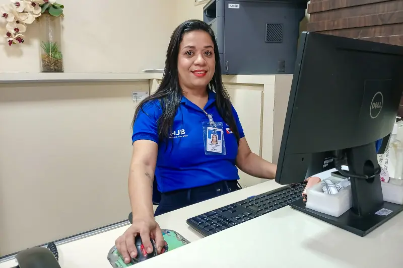 A recepcionista do HJB, Mayara Oliveira, tem orgulho de fazer parte da equipe