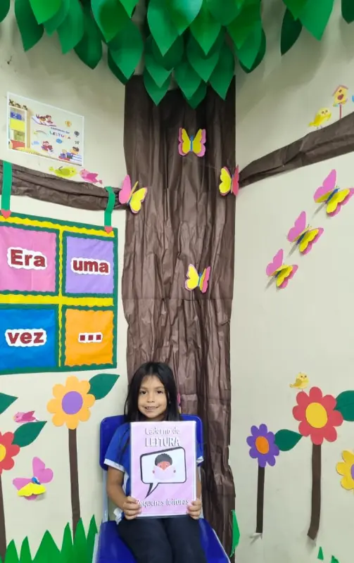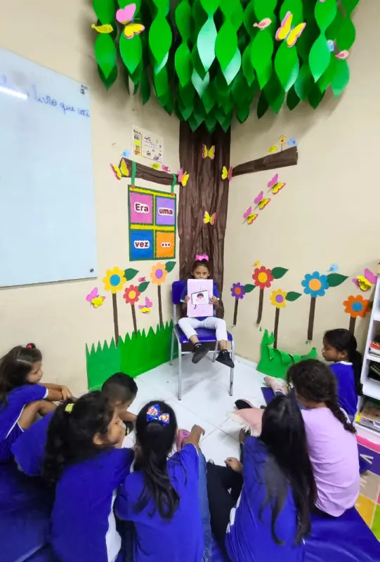 Ela acrescentou: "no retorno à escola, os alunos socializam e contam a história lida em família no Cantinho da Leitura, compartilhando suas experiências e compreensões. Após a socialização da história, é realizada uma roda de conversa para aprofundar a compreensão do conteúdo. Nesse momento as crianças exploram aspectos como começo, meio e fim da narrativa, além de refletirem sobre os pontos positivos e negativos da história”.