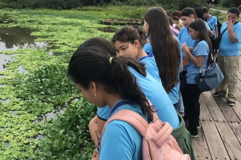 Alunos da Escola Municipal Profª Amália Paumgartten, no Bairro do Guamá, em Belém, participaram de visita guiada ao Parque Estadual do Utinga Camillo Vianna, na quarta-feira (12). A ação faz parte do Programa Regenerar, conduzido pelo Instituto de Desenvolvimento Florestal e da Biodiversidade do Pará (Ideflor-Bio), em parceria com as Usinas da Paz e instituições de ensino da Região Metropolitana de Belém.