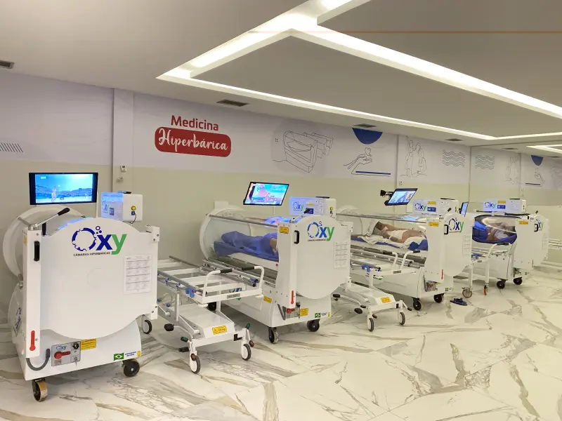 Na unidade, os pacientes passam por análise clínica para entender a necessidade do tratamento. Em câmaras individuais, cada sessão dura aproximadamente 1h30 e é acompanhada por equipe treinada, composta por médicos, enfermeiros e técnicos.