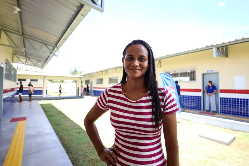 “A escola vai trazer benefícios muito bons para a minha filha, porque ela vai começar o primeiro ano. É muito bom a gente ter uma escola de ensino médio aqui perto, porque as filhas da gente saiam daqui, saiam pra fora. A minha filha, certamente, ia estudar em outra localidade, mas como a escola veio pra cá, ela tem a oportunidade de estudar aqui mesmo, perto da casa dela. Ela ia ter que morar na casa do meu irmão. Da mesma forma, eu tinha que ajudar financeiramente, né? E ela tendo em casa, o que eu podia pagar pra ela lá na casa do meu irmão, eu vou investir no estudo dela pra que possa crescer, pra que possa ter uma educação mais avançada, né? E ter uma escola de qualidade. Esse prédio aqui é muito bonito, ter essa escola maravilhosa e que vai proporcionar muita facilidade pros alunos”.